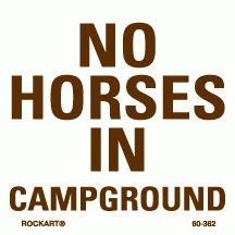 60-362No horses in campground. 3 x 3 decal. White/brown. Reflective.
