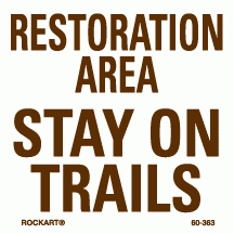 60-363Restoration area - stay on trails. White/brown. Reflective.
