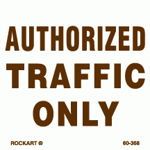 60-368Authorized traffic only. 3 x 3 decal. White/brown. Reflective.