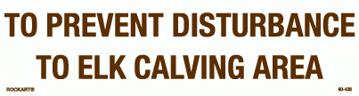 60-438To prevent disturbance to elk calving area. 10.25 x 2.75 horizontal strip decal. White/brown. Reflective.