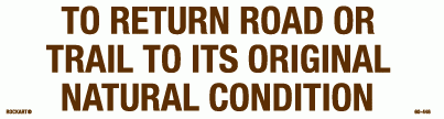 60-446To return road or trail to its original natural condition. 10.25 x 2.75 horizontal strip decal. White/brown. Reflective.