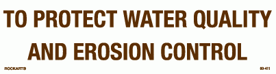 60-455To protect water quality and erosion control. 10.25 x 2.75 horizontal strip decal. White/brown. Reflective.