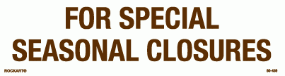 60-459For special seasonal closures. 10.25 x 2.75 horizontal strip decal. White/brown. Reflective.