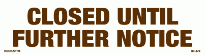 60-472Closed until further notice. 10.25 x 2.75 horizontal strip decal. White/brown. Reflective.