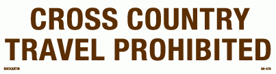 60-476Cross country travel prohibited. 10.25 x 2.75 horizontal strip decal. White/brown. Reflective.