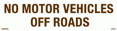 60-479No motor vehicles off roads. 10.25 x 2.75 horizontal strip decal. White/brown. Reflective.