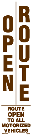 60-5163" x 12" Strip Decal. Open route. Route open to all motorized vehicles. White/brown. Reflective.