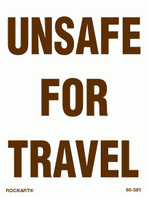 60-581Unsafe for travel. 3 x 4 decal. White/brown. Reflective.