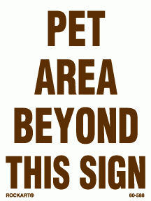 60-588Pet area beyond this sign. 3 x 4 decal. White/brown. Reflective.