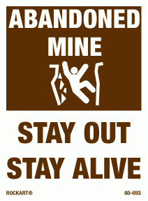60-6933 x 4 decal. Abandoned mine. Stay out, stay alive. Brown/white. Reflective.