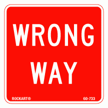 60-773 3 x 3 Decal - "Wrong Way", Wht/Red, EG