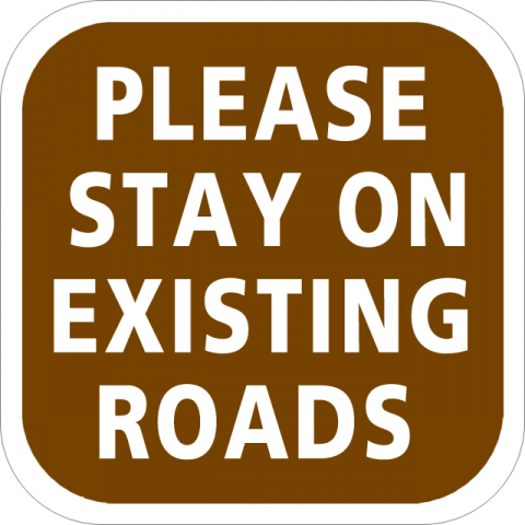 60-786-Size18 x 18 Alum. Sign - "Please Stay On Existing Roads", Wht/Brn, EG