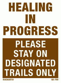 60-7993 x 4 decal. Healing in progress. Please stay on designated trails only. White/brown. Reflective.