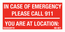 60-8213 x 1.5 decal. In case of emergency, please call 911 You are at location:. White/red. Reflective.