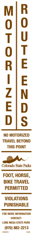60-8623 X 20 Strip Decal - "Motorized Route Ends - Colorado State Parks", Wht/Brn, EG