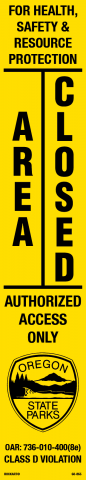 60-8653 X 16 Strip Decal - "Area Closed, Authorized Access Only" Oregon State Parks, Yel/Blk, Reflective