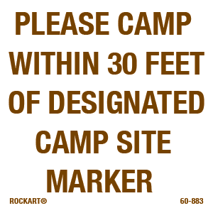 3 X 3 Decal - Please Camp Within 30 Feet Of Next Designated Camp Site Marker, Wht/Brn, Reflective