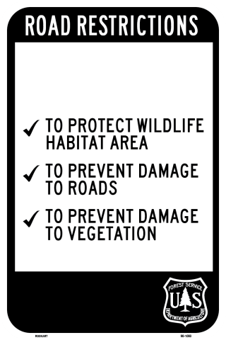 12 x 18 x .080 Alum. Sign - "Road Restrictions / To Protect Wildlife Habitat Area / To Prevent Damage to Roads..." w/Blank Date Area, USFS Logo, Wht/Blk, HIP