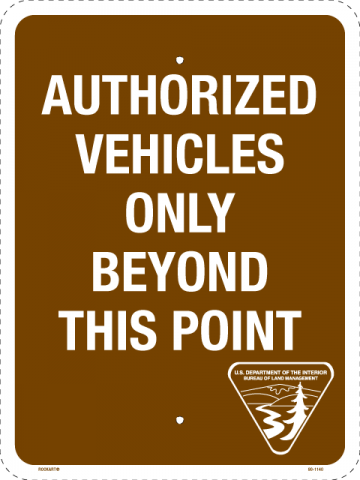 90-1140 9 X 12 X .05 Polyflex Sign - "Authorized Vehicles Only Beyond This Point", BLM Logo, Brown-White, Non-Reflective