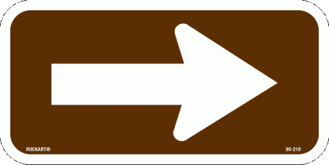 90-210Single arrow, can be used to point right or left. 8" x 4" sign. White/brown. Fully reflective. .080 thick Aluminum with rounded corners.
