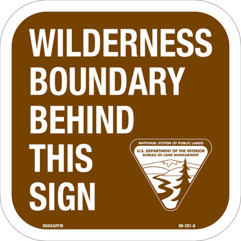 90-251-8 8 x 8 x .080 Alum. Sign - " Wilderness Boundary Behind This Sign", BLM Logo, Wht/Brn, EG