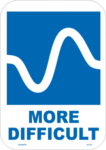 90-276More difficult sign - text and graphic symbol, 8 x 11 x .080 Aluminum, White/blue. EG