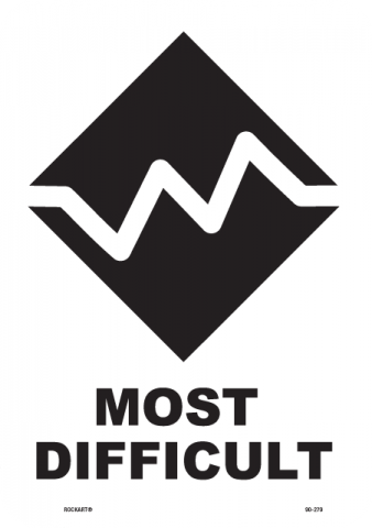 90-279Most difficult sign - text and graphic symbol, 8 x 11 x .080 Aluminum, White/black, EG