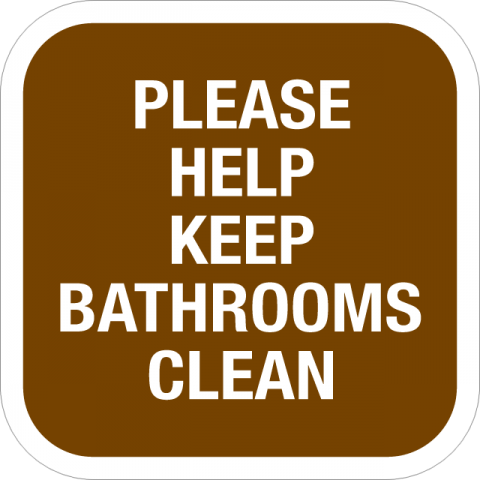 90-314-Size Please help keep bathrooms clean. White/brown. Fully reflective. .080 thick Aluminum with rounded corners. Each sign has four 7/32" diameter holes for easy mounting.