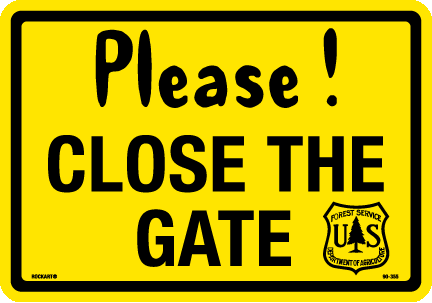 10 X 7 Alum. Sign - "Please! Close The Gate", Double-Sided, USFS Logo, Yel/Blk, Non-Reflective