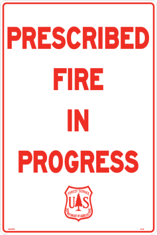 24 X 36 X .110 PolyFlex Sign - "Prescribed Fire In Progress", USFS Logo, Wht/Red, Non-Ref