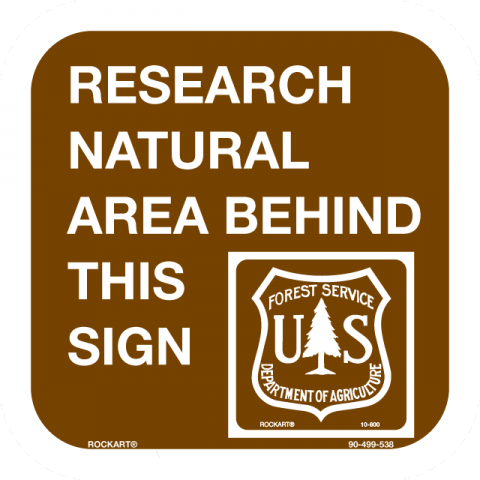 8 x 8 x .080 Alum. Sign - "Research Natural Area Behind This Sign" w/ USFS Logo, Wht/Brn, EG