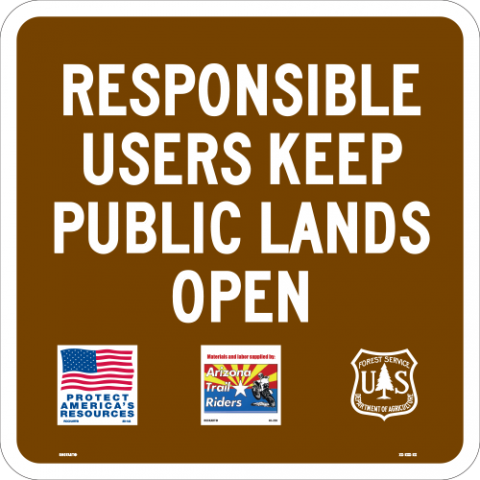 18 x 18 x .080 Alum. Sign - "Responsible Users Keep Public Lands Open" w/blank zones for additional decals, w/USFS Logo, Wht/Brn, EG