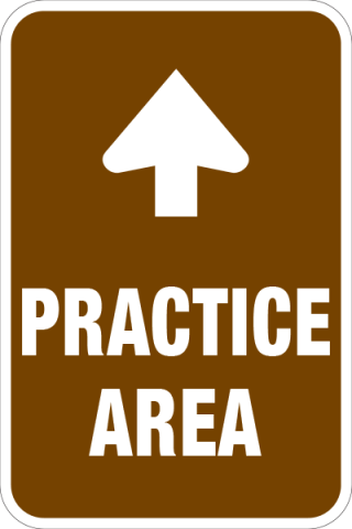 90-499-65812 x 18 x .080 Alum. Sign - "Practice Area w/Up Arrow", Wht/Brn, EG
