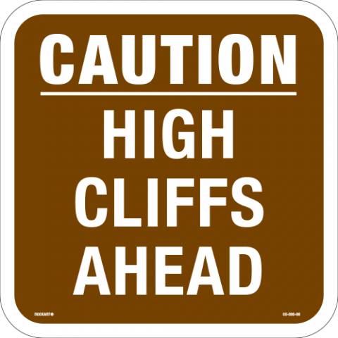90-499-66212 x 12 x .080 Alum. Sign - "Caution - High Cliffs Ahead", Wht/Brn, EG