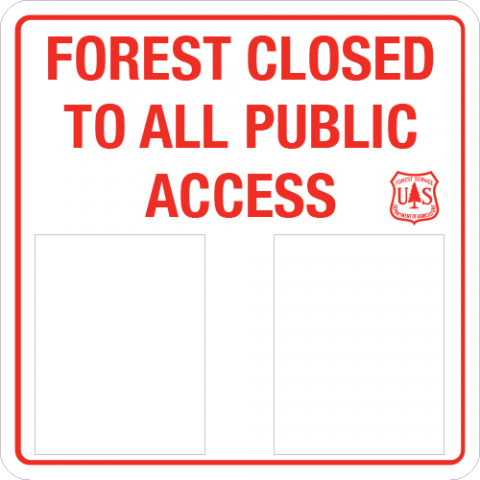 24 x 24 x .080 Alum. Sign - "Forest Closed To All Public Access" w/ Blank area for additional info, USFS Logo, Wht/Red, EG