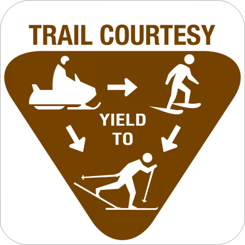 12 x 12 x .080 Alum. Sign - "Trail Courtesy-Snowmobiles, Snowshoes, Cross Country Skiing", Wht/Brn, EG