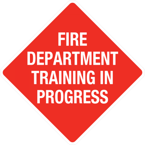 24 x 24 x .080 Alum. Sign - "Fire Department Training In Progress" (Diamond Shape), Wht/Red, EG