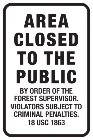 12 x 18 x .080 Alum. Sign - "Area Closed To The Public-By Order Of The Forest Supervisor" Wht/Blk, EG
