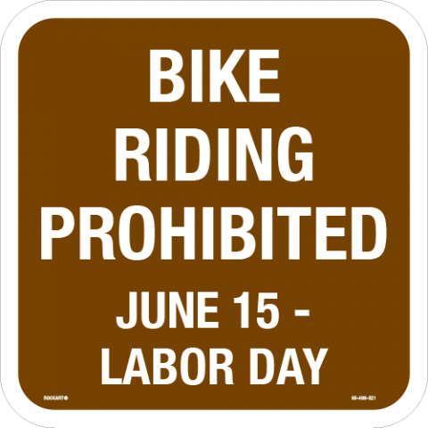 12 x 12 x .080 Alum. Sign - "Bike Riding Prohibited June 15 - Labor Day", Wht/Brn, EG