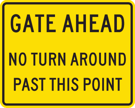 30 X 24 Alum. Sign - "Gate Ahead - No Turn Around Past This Point", Yel/Blk, Reflective