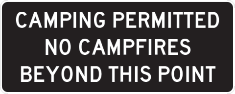60 x 24 x .125 Alum. Sign - "CAMPING PERMITTED / NO CAMPFIRES BEYOND THIS POINT", Wht/Blk, EG