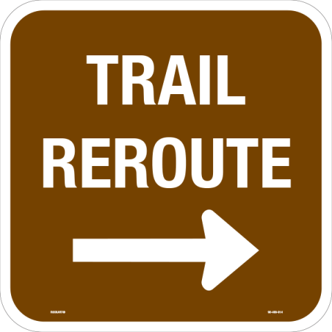 90-499-91412 x 12 x .080 Alum. Sign - "Trail Reroute w/ Right Arrow", Wht/Brn, EG
