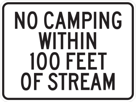 90-499-92424 x 18 x .080 Alum. Sign - "No Camping 100 Feet of Stream", Wht/Blk, EG