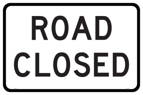 90-499-97224 x 16 x .080 Alum. Sign - "Road Closed, Wht/Blk, EG