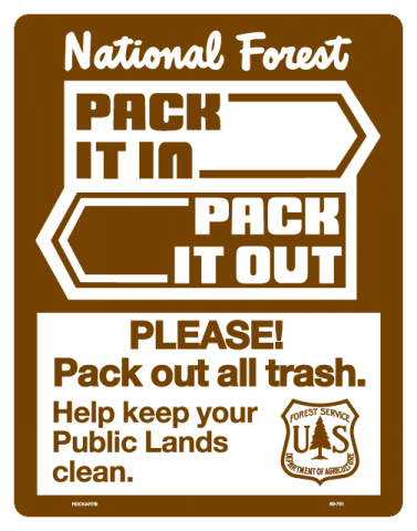 90-75111 x 14 x .110 PolyFlex Sign - "Pack It In - Pack it Out", USFS Logo, Wht/Brn NREF