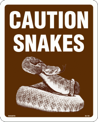 90-7588" x 10" sign. Caution. Snakes. .05 Poly-Flex. White/brown. Non-reflective.