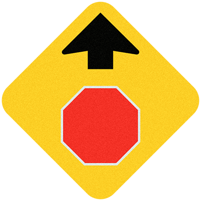 12 x 12 x .080 Alum. Sign - "Stop Ahead" graphic only (Diamond shape), Wht/Yel/Blk/Red, EG