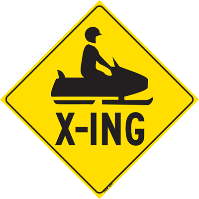 12 x 12 x .050 PolyFlex Sign - "Snowmobile X-ING (crossing)" graphic & text (Diamond shape), Yel/Blk, Semi-Reflective
