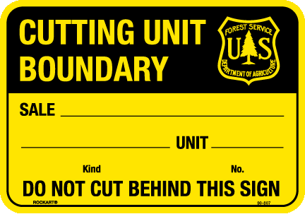 10 X 7 PolyFlex Sign - "Cutting Unit Boundary - Do Not Cut Behind This Sign", USFS Logo, Yel/Blk, Non-Reflective