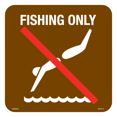 90-843-SizeAlum. Sign - "No Diving (Symbol) w/text: FISHING ONLY", Wht/Brn/Red
